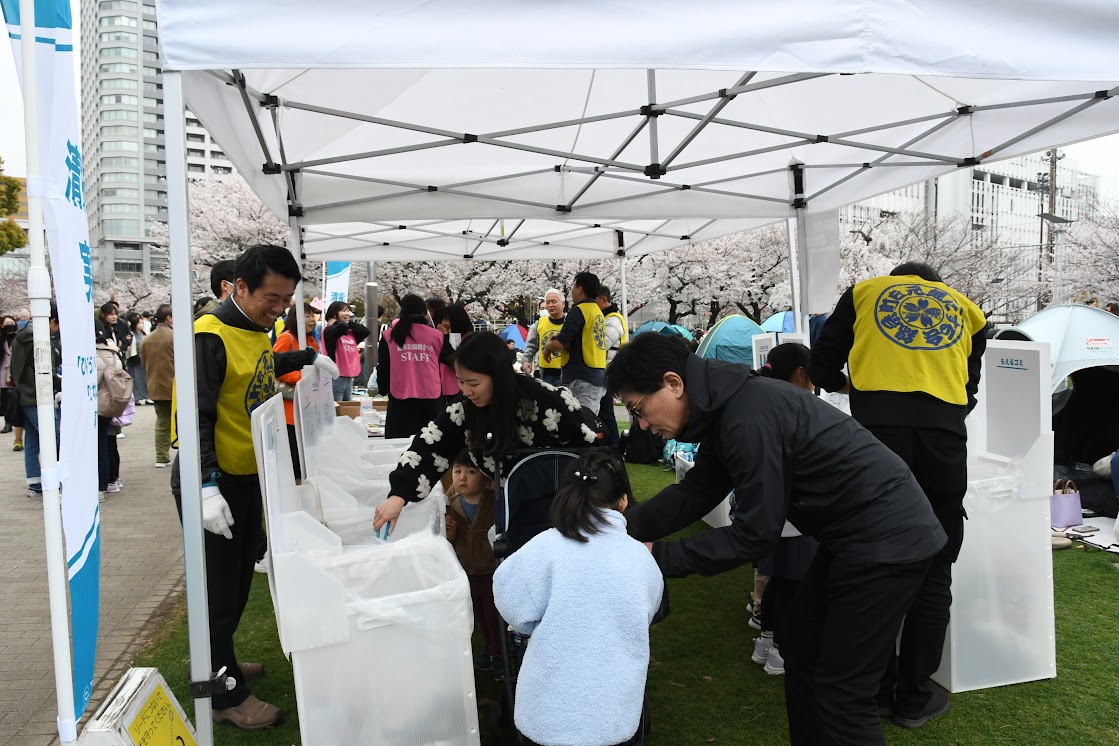 さらに、期間内の5/14(土)、15(日)に錦糸公園内の清掃活動を錦糸町を元気にする会の会員である「日本たばこ産業(株)」主導で「ひろえば街が好きになる運動」として実施し、2日間で約160人の方々が参加されました。